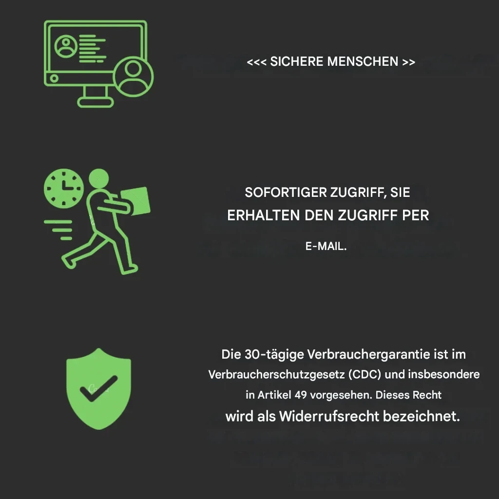 Nach deiner Bestellung erhältst du eine E-Mail mit allen Details und den nötigen Informationen, um auf deinen geschützten Bereich zuzugreifen.